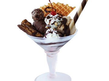 Veronese Chocolate, Original Chocolate and Hazelnut gelato served with Snicker pieces and Ferrero chocolate. Topped with chocolate fudge sauce, roasted nuts & served with a fan wafer, chocolate wafer sticks and a cherry!