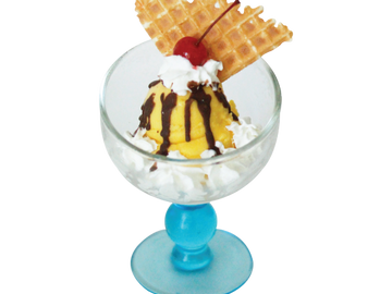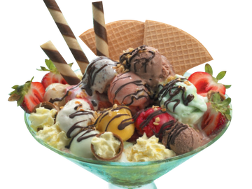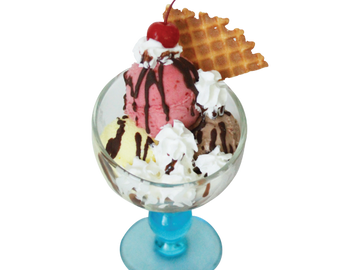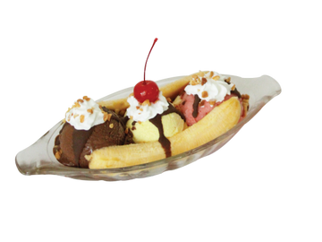 Chocolate, Vanilla and Strawberry gelato served with whipped cream, bananas, chocolate sauce, chopped nuts and a cherry on top!